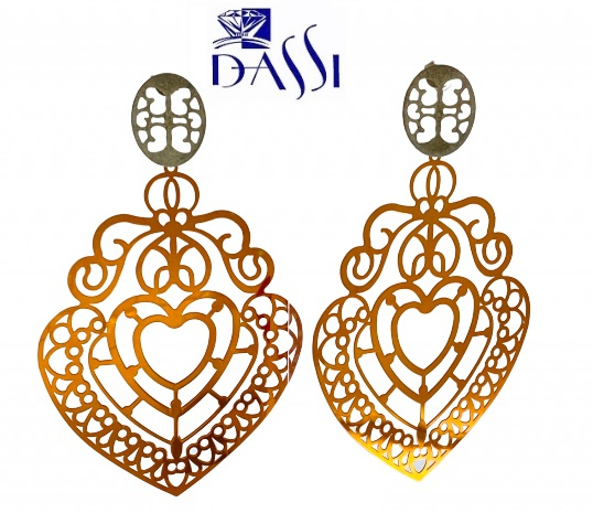ORECCHINI PENDENTI IN ARGENTO 925 DORATO E BRUNITO A FORMA DI CUORE